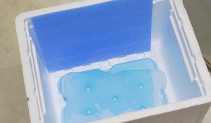 保冷剤は一番上に入れるようにすると、冷気は高い所から低い所へ向かう性質があるので効率よく冷やすことができます。また、氷よりも