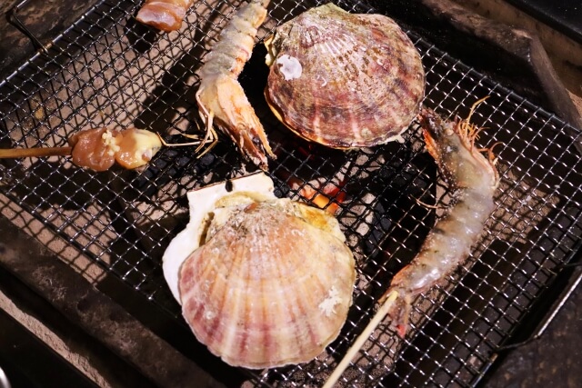 炭火でこんがり、香ばしく焼けたエビは最高に美味しいですよ!レモンを絞って食べるのもおすすめです。殻ごと豪快にガブリと頬張って、エビの美味しさを120%味わってみてくださいね。