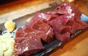 牛の肝臓部分で、繊維はなく柔らかいお肉です。ビタミンA、B群、鉄分を多く含んでおり、貧血などに効果があるとされています。焼肉店では焼くよりも刺身のほうが人気があります。 生臭くて苦手な方も多いですが女性の方などは肌がきれいになるという理由から好んで食べる方が多いです。新鮮なものほどきれいなあずき色をしており、歯触りは柔らかさの中にコリコリ感があります。