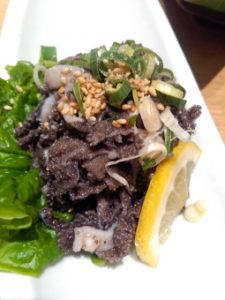 センマイとは牛の第3の胃です。少し生々しい見た目ですが、味は脂少な目でさっぱりしています。ホルモンの中でもカロリーが低く、歯ごたえのあるコリコリとした食感が特徴的です。さっぱりとした酢味噌などでいただくお刺身に人気があります。鉄分が多く含まれることから、色が黒っぽく焼肉屋さんなどでは「黒センマイ」と呼ぶこともあります。 見た目を気にする高級店などでは表面の灰色の部分を湯むきして「白センマイ」として提供しているところもあります。鉄分が多くカロリーが控えめなため女性からの人気も高いようです。