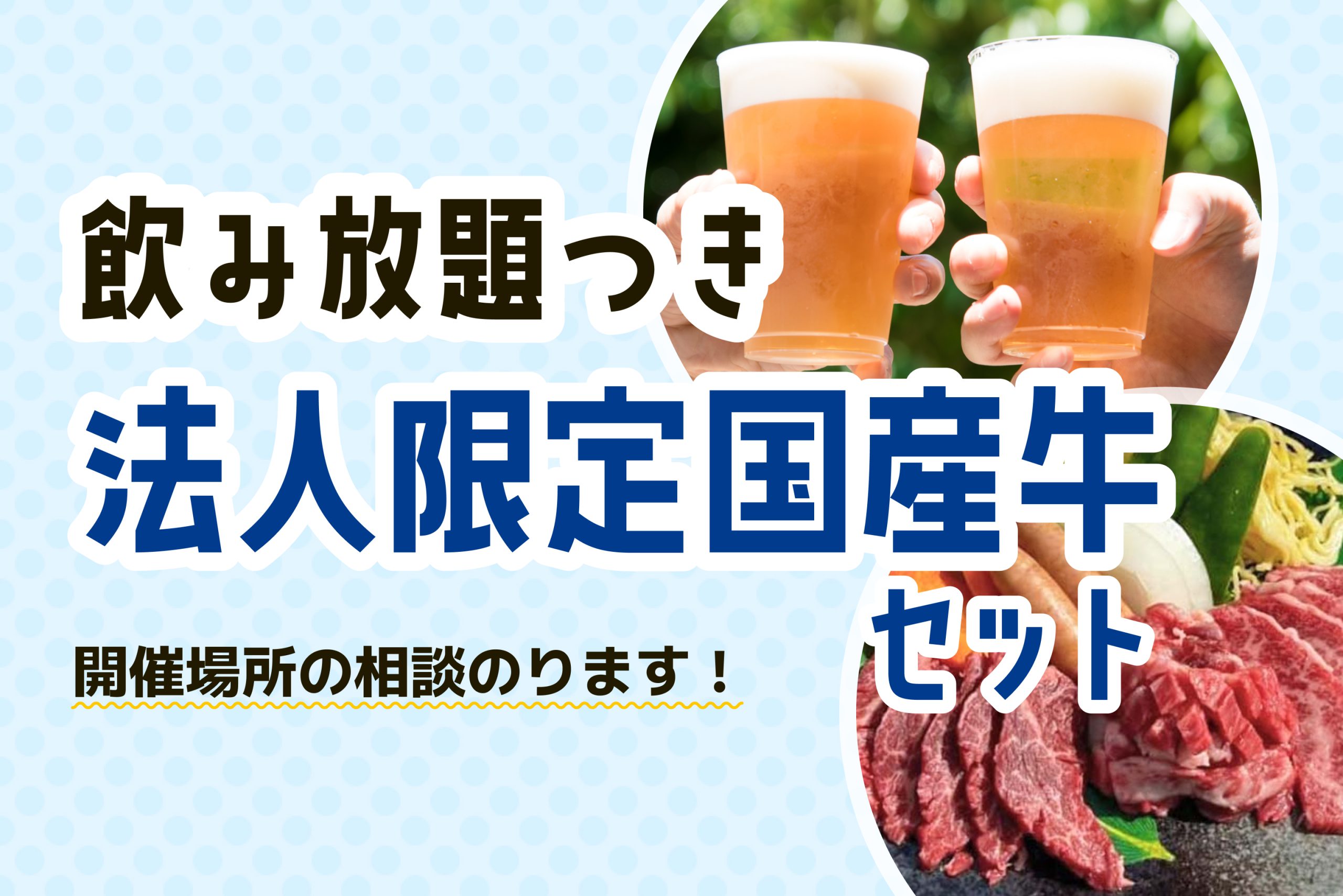 【飲み放題付き】法人限定国産牛セットなら面倒な事ぜーんぶお任せ!